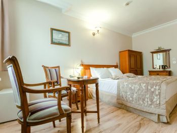 Номер - намного хуже, чем на картинке. Старый шкаф, жёсткий матрас, напор в душе маленький, слив засорен и вода плохо стекала. Бачок в туалете тоже тёк, нужно было нажимать несколько раз, чтобы остановить воду. Завтрак посредственный, молочных продуктов не было.
