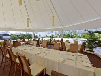 Ежедневно гостям подают континентальный завтрак, полный английский/ирландский завтрак или итальянский завтрак. При Safari Island работает ресторан, где подают блюда американской кухни, блюда индийской кухни и суши. По запросу для гостей приготовят вегетарианские, безлактозные и халяльные блюда.