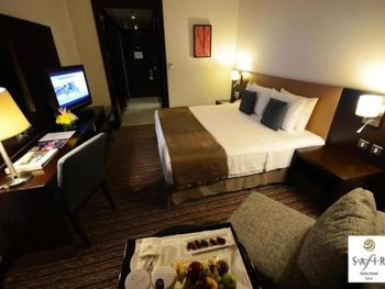 Была в Катаре на пересадке, выбрала этот отель. Отель очень понравился, было чисто и уютно, предоставлялась бесплатно вода, пакетики чая и кофе, сливки. В номере есть телевизор и холодильник, в ванне набор из геля для душа, мыла, шампуня и бальзама для волос, ванная тоже очень чистая, есть несколько полотенец. В номере шторы, которые закрывают весь солнечный свет, что было большим плюсом. В отеле есть бассейн, но в нем не удалось побывать. В минутах 10 есть станция метро. She was in Qatar on a transplant and chose this hotel. The hotel was very pleasant, clean and cosy, provided free water, tea and coffee packages, cream. The room has a TV and a refrigerator, a bath set of shower gel, soap, shampoo and hair balm, the bath is also very clean, there are several towels. The curtains in the room that shut out all the sunlight, which was a great plus. The hotel has a swimming pool, but has not been able to visit. In minutes 10 there is a metro station.