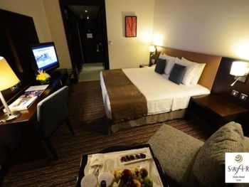 После утомительного 10-ти часового перелёта из Бали и 3-х часовой задержки в аэропорту ‘’Хамад’’ в Дохе в связи с проверкой прибывающих в страну на наличие коронавируса, конечно же нам хотелось лишь одного - спокойно отдохнуть в комфортных условиях. В отеле ‘’Safir Hotel Doha’’ мы забронировали проживание в номере ‘’Суперлюкс’’ на трое суток. Площадь номера довольно большая - 48 кв.метров. В спальне огромная кровать размера ‘’queen-size’’, в гостиной 2 односпальные кровати. Есть очень вместительная гардеробная комната с сейфом и вешалками для одежды. Плотные портьеры на окнах. Шум с улицы был слышен минимально, хотя окна выходили на действующую стройку. В ванной комнате довольно большая душевая кабина с тропическим и ручным душем. Напор горячей и холодной воды отличный. В день заезда, как и в большинстве отелей, не хватало третьего комплекта полотенец, косметических средств и воды. Но в последующие дни всё это донесли. И ещё положили с избытком. Очень порадовала итальянская эко-косметика ‘’ANYAH’’ в стильных упаковках. Фен работал исправно. Были напольные весы. Порадовало то, что тапочки не пришлось просить. В комнатах установлены 2 телевизора с плоским экраном, но без российских каналов. Мини-бар по запросу. Были электро-чайник, 2 чашки и всего одна чайная ложка. Стандартный чайный набор пополнялся с избытком. Встроенный в стену кондиционер работал очень мощно. Вообще номер порадовал относительной чистотой. Завтрак при отеле мы не оплачивали, так как питались в моллах. Персонал очень отзывчивый. Оплату сняли с карты при заселении. Также нам продлили пребывание до 14:00 без доплаты, хотя чек-аут в 12:00. А при выселении даже не пришлось ждать проверки номера. У входа в отель стоял человек с санитайзером и обрабатывал всем желающим руки.
