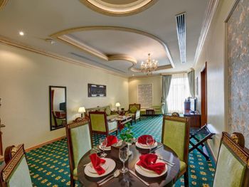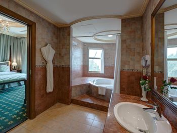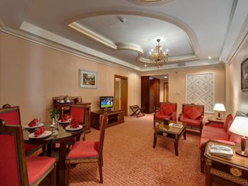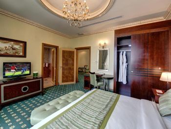 Мы бронировали 2 номера, тк путешествовали большой семьёй. При заезде нам предоставили номера на разных этажах. Номер с кроватью "Кинг-сайз" в жизни оказался очень маленьким и тесным, он был заставлен мебелью (совершенно лишней, старомодной и неудобной), отличался от изображений на сайте для выбранной нами категории, поэтому мы попросили номер заменить; нам согласились пойти навстречу, но заменили не сразу, а через 2 дня. Учитывая, что в отеле есть номера смежные с соединяющими их дверями, и наш заблаговременный запрос при бронировании на соседние номера, было бы замечательно, если бы нам такие смежные номера и предоставили. Но нет! В отеле преобладают отдыхающие из стран бывшего СНГ, не знаю, в плюс это или в минус!