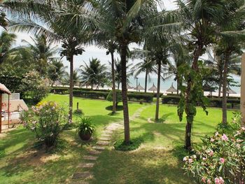 В отеле во второй раз. Пляж,море отличные. Лежаков много. Бассейн,территория ухоженные. Из номера видно море, засыпаешь по шум волн. Завтраки хорошие. И национальная кухня и яичница, и сосиски, сыры,колбасы, фрукты-овощи.Все достойно. Отель расположен посередине деревушки. Вокруг много тур.агенств с русскими и большим набором экскурсий,включая тур в Камбоджу. Если есть время,съездите. Храмы там потрясающие. Много всевозмлжных кафушек. Как правило,есть меню на русском с картинками. Продают много дешевых фруктов: манго -3х сортов,ананасы, личи,рамбутаны и т.д. Сразу могут сделать сок. На наши деньги стакан около 40 руб. Морепродукты свежие. Рекомендую съездить в Бокэ. 5 мин.на такси. Бокэ-это подряд несколько ресторанов с морепродуктами, которые плавают в аквариумах. Показываешь,что хочешь ,и подают гриль. Отдых недорогой, кухня отличная,отель хороший.