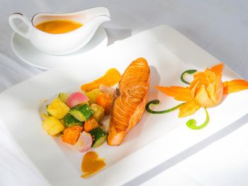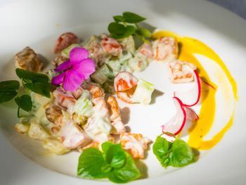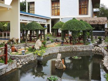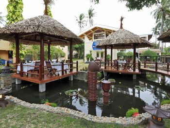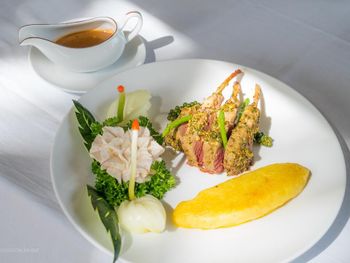 В ресторане подают разнообразные блюда западной и азиатской кухни. Столики расположены как на открытом воздухе, так и внутри.