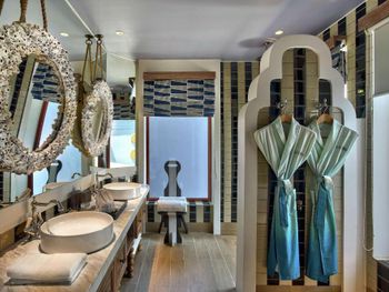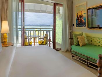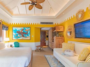 Близкое расположение от аэропорта, встретили и проводили к катеру, все быстро, персонал приветливый, во всем помогал. Комната большая, с прямым выходом к пляжу, большая удобная кровать, белоснежная постель, наличие бокалов, стаканов, ставят 3-4 бутылки воды в день. Так же понравилось наличие 2 раковин в ванной, полотенца меняли 2 раза в день и уборка тоже дважды. Была предоставлена сушилка для белья по нашему запросу. Очень понравились завтраки, разнообразные и вкусные, большая и красивая территория отеля, понравилось наличие магазинов и банкоматов, багги по запросу. Вкусная еда во всех ресторанах, 2 бассейна