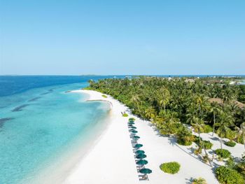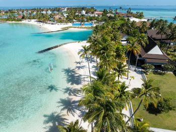 Находится недалеко от Мале, на скоростном катере около двадцати минут, что очень удобно. Персонал внимательный, индивидуальная встреча на острове и сразу небольшая экскурсия. Мы приехали около десяти утра и нас сразу заселили в номер. Красивые пляжи с разных сторон острова, великолепный домашний риф с рыбками для снорклинга. Видели акул под домиками на воде и под мостом. Манты сразу на переходе на глубину. Много разноцветных рыбок на домашнем рифе.