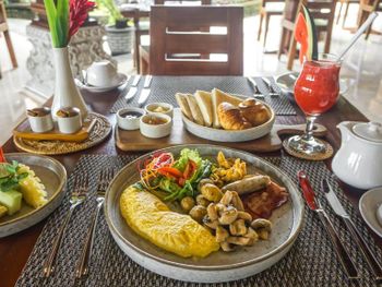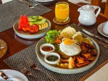 При Sakti Garden Resort & Spa работает ресторан, где подают блюда индонезийской кухни и блюда международной кухни. По запросу для гостей приготовят вегетарианские, халяльные и веганские блюда.
