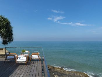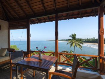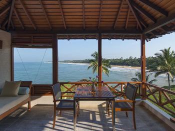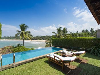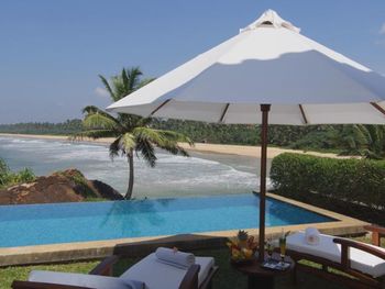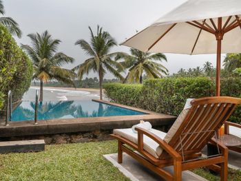 Отель расположен в уникальном месте , на не высоких скалах посреди длинного, красивого пляжа. Это придаёт особую атмосферу. Брали «виллу» с бассейном. В номере все уютно: кожаный диван, большая кровать , в ванной комнате большая ванная. С наружи небольшая Трасса, лужайка и сам бассейн с видом на пляж о который разбиваются волны. Везде пальмы, растительность , все радует глаз. Так-как в те дни когда мы были , в отели никого больше не было (не сезон) была «приватность» на лужайке и в бассейне, хотя если присмотреться то из-за кустов все можно разглядеть у соседей. Кухня, очень качественная. Мы были 4 ночи. И за это время не покидали территорию отеля. Все время питались в ресторане. Меню не маленькое, есть из чего выбрать. Все ОЧЕНЬ качественно делают, как в хорошем Московском ресторане. Очень красивый (оформление сотрудниками) и романтичный ужин на террасе , советуем. Завтраки также - отлично. Персонал максимально внимателен и вовлечён в решение всех вопросов. Хорошее обслуживание. Спасибо сотруднику отеля - Jayawardana, он отлично справился со своей задачей, на 5 звёзд. Делал наш отдых комфортным! Администратор девушка тоже постоянно интересовалась нашим комфортном и настроением. Потрясающие закаты наблюдаются с открытой площадки ресторана между 18:00-19:00 . На скалы у берега в течение дня выходит из воды много крабов (не больших 5-20 см) сливаются с каменной поверхностью, но если хорошо присмотреться то их можно разглядеть, их достаточно много. Если резко подойти к ним , то они начинают все разбегаться в разные стороны, я счёл это веселым занятием. Возле ресторана также присутствует живность, в виде милых, мини белок, которые не против покормится с «вашей руки»