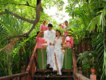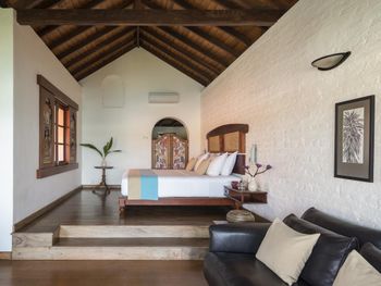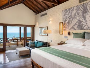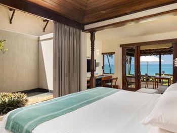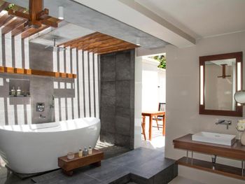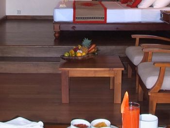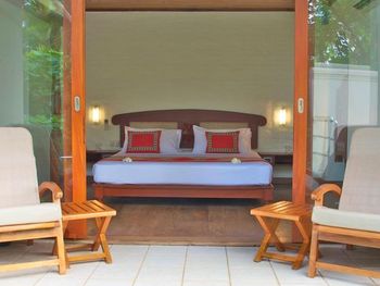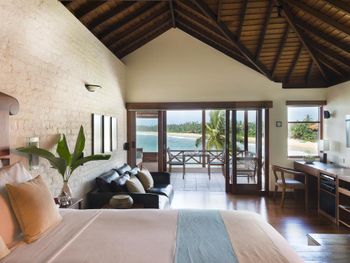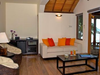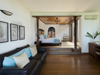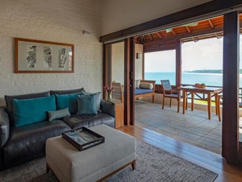 В просторных люксах установлена деревянная мебель и настелены деревянные полы. Они оборудованы кушеткой, большой гостиной и отдельной ванной комнатой с ванной на открытом воздухе и душем. Из люксов открывается изумительный вид на океан.