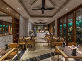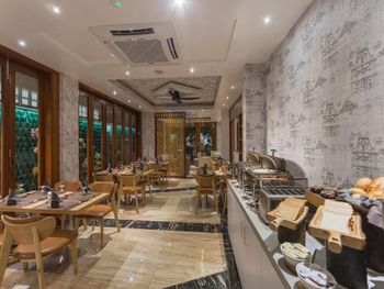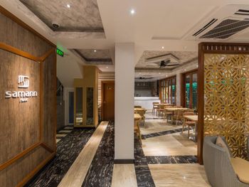 При Samann Host работает ресторан, где подают блюда китайской кухни, блюда французской кухни и блюда греческой кухни. По запросу для гостей приготовят безлактозные, халяльные и веганские блюда.