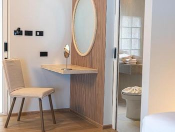 Отель расположен рядом с прогулочной улицей, но в то же время в отеле очень тихо и спокойно. Приветливый персонал. Бронировали 2 номера в основном корпусе для себя и детей. Номера уютные, комфортные, чистые. Уборку, смену полотенец, пополнение воды производили ежедневно. Удобные кровати, хорошие полотенца. Wi-Fi тянет до пляжа. На территории отеля спокойно и красиво, наполняемости посетителями не чувствуется. Хорошей завтрак
