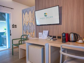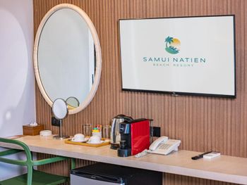 В номерах курортного отеля Natien Samui в вашем распоряжении кондиционер, собственная ванная комната, телевизор с кабельной системой вещания и принадлежности для чая/кофе. Также предоставляются утюг и фен.