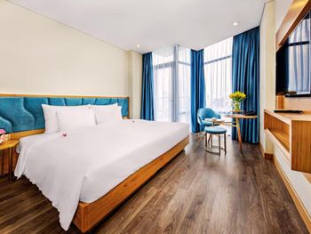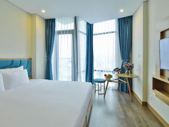 Очень классный отель! Мы жили на 7 этаже из нашего номера был виден мост Дракона! 10 минут пешком до моря,рядом много кафешек,ресторанчиков,до моста Дракона тоже минут 10 пешком. В номере есть все необходимое,особенно понравился сильный напор воды,просто огромная кровать,все белье аж хрустит от свежести,уборка номера каждый день,так же ставят воду,чай и кофе в пакетиках. На 15 этаже есть панорамный бассейн и бар,а так же мини спортзал. Завтраки были бесподобны,каждый день,добавляли какие то новые блюда,все свежее и сытное. Администраторы Kha и Vy очень доброжелательны,разрешили нам оставить свой багаж на сутки,а так же подсказали дорогу как проехать в город Хойан.