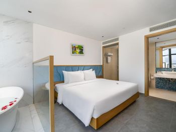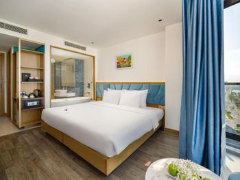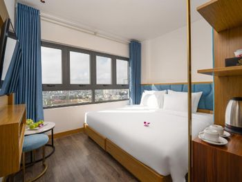 Номер превзошёл ожидания: красиво, комфортно, свежий ремонт и новая мебель. Душевая отделена от спальни стеклом, выглядит очень эффектно, при желании можно закрыть шторой. Вкусные и разнообразные завтраки. Персонал очень вежливый и внимательный. На крыше отеля бассейн и бар с видом на город. В пешей доступности мост Дракона, до остальных достопримечательностей нужно ехать на байке или такси.