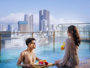 При заселении учли все пожелания дополнительные оставленные при бронировании номера. Нас угостили приветственным напитком. Номер нам дали на 15 этаже, с которого замечательный вид. Очень приветливый и отзывчивый персонал, готовый прийти на помощь в любом вопросе. Большая благодарность Dao работающей на ресепшн, она помогала в любом вопросе и всегда предлагала помощь, очень отзывчивая и приветливая. Завтрак замечательный, большой выбор как местной кухни, так и европейской кухни. Расположение отела замечательное до пляжа 15 минут и до цента 15 минут и ты у моста Дракона. На 17 этаже находится бассейн вид из которого завораживает.