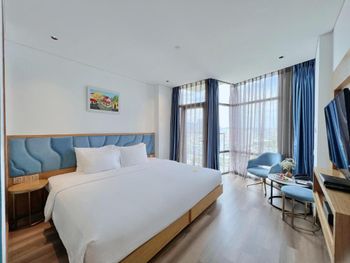 В Дананге остановились по делам на 1 сутки. Требование к отелю было, чтобы был бассейн, ванная комната и панорамные окна. Все эти требования мы нашли в вашем отеле. Все очень понравилось. Панорамный вид. С балкона виден Мост Дракона. Ванна... Как же мы по ней соскучились))) 2 раза за день приняли. Отдельный душ тоже есть. Все чистенько. Нет живности, что очень большой плюс. Понравилось еще то, что нам завтрак дали в дорогу, тк уезжали мы из отеля в 5 утра. Сами предложили такой вариант, что еще ценней. Спасибо вам за гостеприимство)