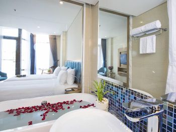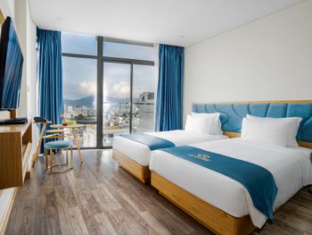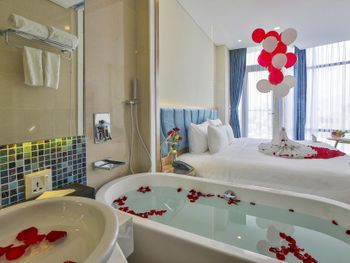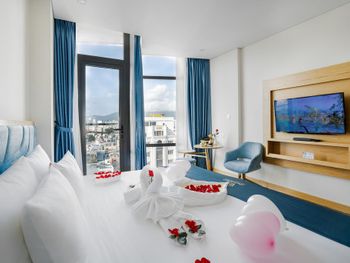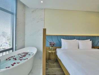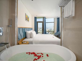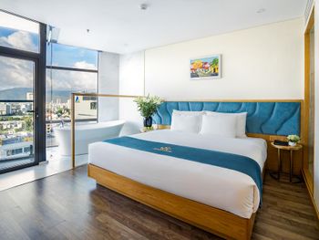 В Дананге остановились по делам на 1 сутки. Требование к отелю было, чтобы был бассейн, ванная комната и панорамные окна. Все эти требования мы нашли в вашем отеле. Все очень понравилось. Панорамный вид. С балкона виден Мост Дракона. Ванна... Как же мы по ней соскучились))) 2 раза за день приняли. Отдельный душ тоже есть. Все чистенько. Нет живности, что очень большой плюс. Понравилось еще то, что нам завтрак дали в дорогу, тк уезжали мы из отеля в 5 утра. Сами предложили такой вариант, что еще ценней. Спасибо вам за гостеприимство)
