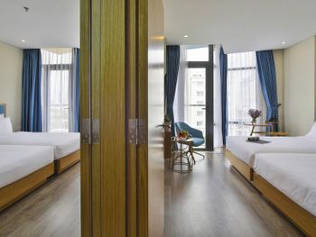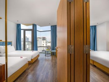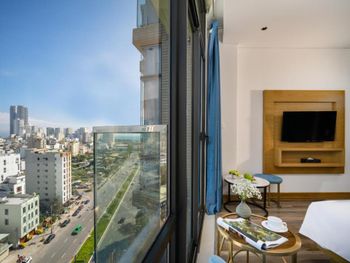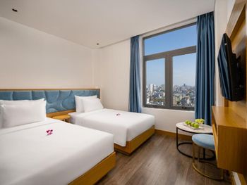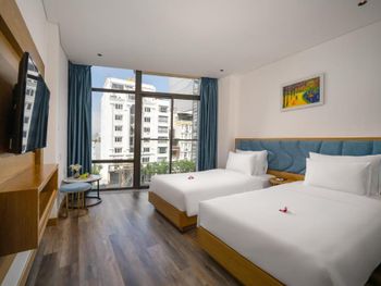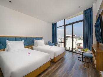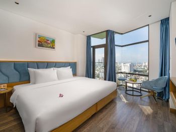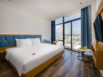 Очень классный отель! Мы жили на 7 этаже из нашего номера был виден мост Дракона! 10 минут пешком до моря,рядом много кафешек,ресторанчиков,до моста Дракона тоже минут 10 пешком. В номере есть все необходимое,особенно понравился сильный напор воды,просто огромная кровать,все белье аж хрустит от свежести,уборка номера каждый день,так же ставят воду,чай и кофе в пакетиках. На 15 этаже есть панорамный бассейн и бар,а так же мини спортзал. Завтраки были бесподобны,каждый день,добавляли какие то новые блюда,все свежее и сытное. Администраторы Kha и Vy очень доброжелательны,разрешили нам оставить свой багаж на сутки,а так же подсказали дорогу как проехать в город Хойан.
