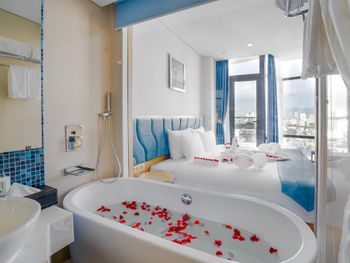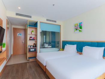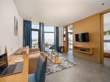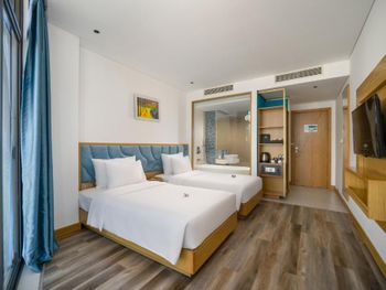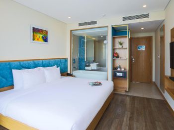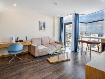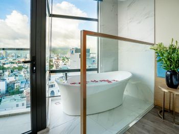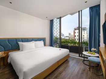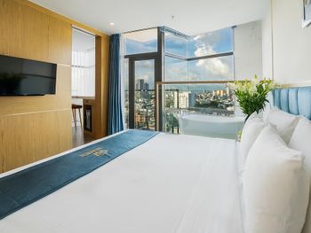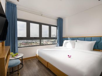 Номер превзошёл ожидания: красиво, комфортно, свежий ремонт и новая мебель. Душевая отделена от спальни стеклом, выглядит очень эффектно, при желании можно закрыть шторой. Вкусные и разнообразные завтраки. Персонал очень вежливый и внимательный. На крыше отеля бассейн и бар с видом на город. В пешей доступности мост Дракона, до остальных достопримечательностей нужно ехать на байке или такси.