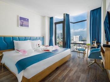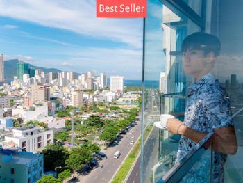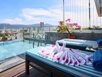 При заселении учли все пожелания дополнительные оставленные при бронировании номера. Нас угостили приветственным напитком. Номер нам дали на 15 этаже, с которого замечательный вид. Очень приветливый и отзывчивый персонал, готовый прийти на помощь в любом вопросе. Большая благодарность Dao работающей на ресепшн, она помогала в любом вопросе и всегда предлагала помощь, очень отзывчивая и приветливая. Завтрак замечательный, большой выбор как местной кухни, так и европейской кухни. Расположение отела замечательное до пляжа 15 минут и до цента 15 минут и ты у моста Дракона. На 17 этаже находится бассейн вид из которого завораживает.