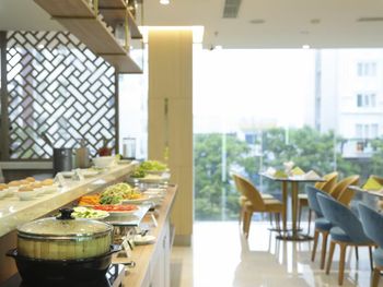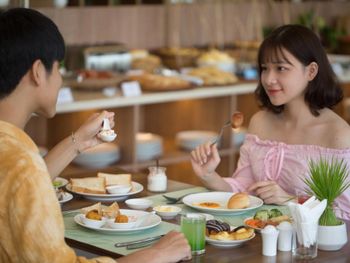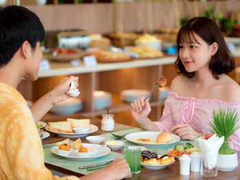 Breakfast with Asian and Western dishes can be selected from the menus.