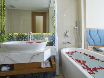 Что могло быть лучше , так это поставить полочки в ванной для шампуня и геля для душа , мне приходилось за ними тянуться через всю ванную комнату. Ещё момент , это то , что в стране где тропические ливни не было места для сушки вещей , несмотря на то, что у нас был балкон, все было постоянно влажное , в ванной комнате места просто не хватало. Когда мы хотели пойти на море , то попросили полотенце как это обычно бывает, отели на побережье предоставляют полотенца, но нам сказали их нельзя выносить и это нас очень огорчило. Спорт зал чисто для галочки видимо, комната метр на метр