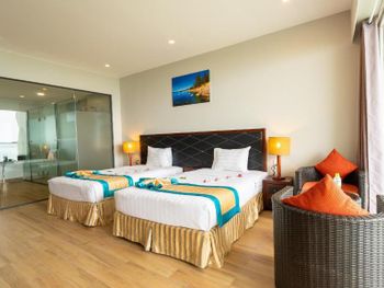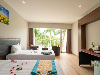 отличный отель! 1) локация: рядом находится супер серф школа rids, пешком по пляжу 200 метров. очень удобно добираться до спота в любое время. на повороте находятся кафе и игра в пиклбол, при желании можно дойти пешком за 15 мин 2) если захоте взять байк, то можно взять его в отеле. качество получше локал проката и удобно сдавать при чекауте — не надо ехать на точку и потом идти пешком/ брать такси 3) персонал отеля — топ. менеджер говорит по-русски. остальные управляющие хорошо говорят на английском. в сложном случае предложат воспользоваться вам гугл переводчиком 4) на территории 3 бассейна и ресторан с утра до вечера 5) персонал отеля может подстроится под персональные пищевые привычки и изменить немного меню для вас на завтрак. обычный завтрак тоже хороший, много фруктов 6) в отеле можно задать трансфер до/из аэропорта дешевле Grab. Также в отеле есть набор экскурсий 7) до красных дюн пешком 7 мин 8) территория достаточно большая, есть где поваляться