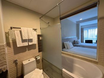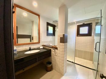 Заселились в этот отель почти случайно. Бронировали другой, а приехав туда обнаружили рядом шумную стройку и крыс. В турбо-режиме ночью нашли Sandy Beach. Все понравилось, кроме процесса заселения. У меня в аккаунт скидка от booking.com. И сотрудник на стойке регистрации(мужчина примерно 40-50 лет) сначала не увидел нашего бронирования, потом долго возмущался "почему дешево", потом возился 2 часа с заселением. В итоге отель-то классный, но первое впечатление не очень