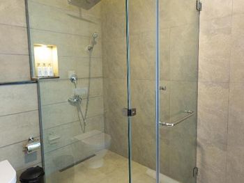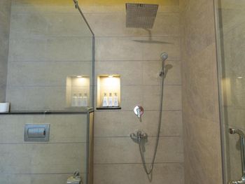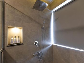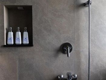 В душевых есть окно, которое с специальными отверстиями под вентиляцию, но нет москитной сетки, поэтому в одной ванной у нас летал жук.