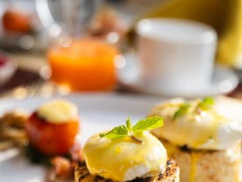 Завтрак по системе выбора из меню . Выбор не большой но все вкусно . Кроме хлеба , который постоянно был разогрет в микроволновке .