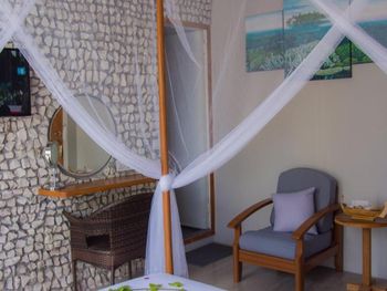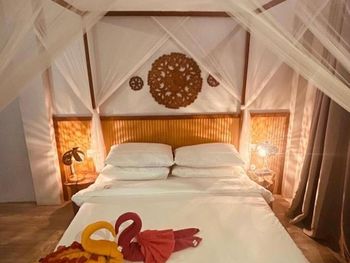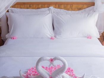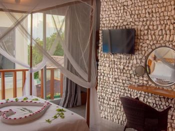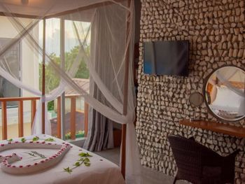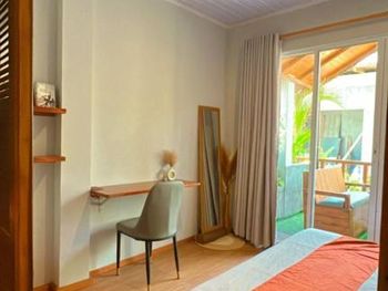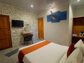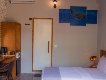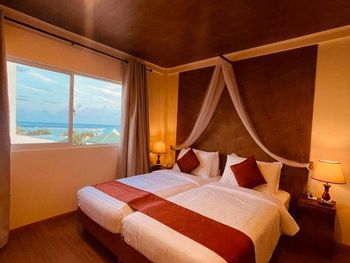 Номер уютный, есть все необходимое. Номер делится перегородкой со шторами на две отдельные секции. Персонал внимательный, помогали с переноской багажа и решением других вопросов. Завтраки не слишком разнообразные, но вкусные и, если попросить, дают добавку. Воду в бутылках в номер также давали без ограничения. На острове много ресторанчиков где можно поесть вкусные морепродукты. Остров маленький, можно обойти по пляжу минут за тридцать. Есть место у пирса куда вечером приплывают на свет фонарей скаты и можно ими любоваться как в океанариуме.