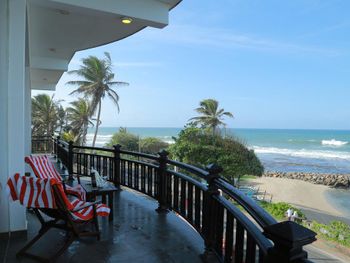 самый лучший из 5 отелей, в которых я была на Шри-Ланке!! Очень приветливый, отзывчивый и гостеприимный хозяин! Поможет со всем, что нужно! Номер огроный, у меня был одноместный с огромной кроватью, шкафами, сейфом, чайником, балконом и ДЖАКУЗИ! Есть горячая вода, что для меня важно. Во многих отелях на шри-ланке ее нет. Все работает, чисто, холодильник тоже есть. Можно взять номер с видом на море, но с общего балкона такой же волшебный вид) приезжайте в этот отель и не пожалеете!