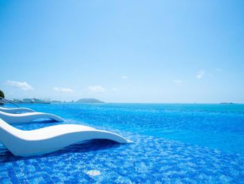Находясь в Санье по турпакету, проходили мимо этого отеля, случайно заметили нависающий над землёй прозрачный бассейн. Посмотрели в интернете фото крыши, где расположен инфинити бассейн, и загорелись желанием обязательно туда попасть. Купили номер на booking с панорамным видом на океан. Заселились в номер и сразу отправились к бассейну на крыше. Место просто обалденное. Бассейн оказался очень даже приличных размеров. С него шикарные виды на город и морюшко! Нам очень понравилось! Про само проживание в отеле скажу, что он очень даже неплох. Шикарный номер с красивейшим видом. Вежливый персонал. Отель был практически заполнен, но толп людей не заметили. Ощущение было наоборот, что находимся в одиночестве, на территории никого, бассейн на верху практически пуст, что приятно удивило (никто не мешал наслаждаться видами).