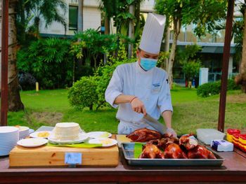 В отеле представлены просторные, роскошно декорированные стандартные номера площадью от 64 квадратных метров и номера люкс — от 85 квадратных метров. Каждый номер изысканно оформлен, оборудован всем необходимым и обладает уникальной атмосферой, отражающей особенности местной культуры. С балконов открывается потрясающий вид на лазурное Южно-Китайское море. В шести ресторанах подают разнообразные блюда китайской и западной кухни, блюда из морепродуктов и тропический послеобеденный чай. Каждый найдет здесь что-то на свой вкус.