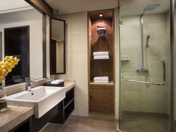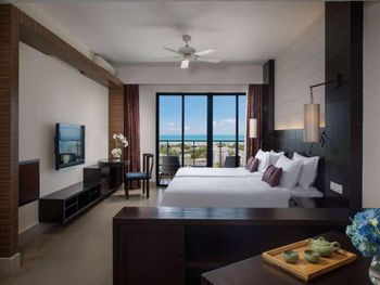 1. Очень вежливый и услужливый персонал. Садишься в такси: швейцар тебе дверь в такси открывает, а другой сотрудник - твой чемодан в багажник загружает. А сам опомниться не успел даже - все уже сделано:) 2 Расположение в самой лучшей бухте Санья Бэй. 22 км пляжа, очень теплая вода по сравнению с другими бухтами. Мало народу на пляже, вернее, пляж такой большой, что можно всегда найти уединенное место. Я например смогла среди бела дня на пляже под пальмами снять купальник и надеть сухую одежду - за километр в обе стороны никого)). И, самое главное, никаких загонов для купания, как в Дадунхае и Ялонг Бэе!! Купайся, где хочешь) 3. Ослепительно белые постельное белье и полотенца. Очень чисто в номере. 4. Номер очень просторный и уютный. У меня был вид на море - очень красиво. Я жила одна, поэтому подняла шторку в ванной, которая закрывает ее от комнаты. И принимала душ любуясь морским видом).