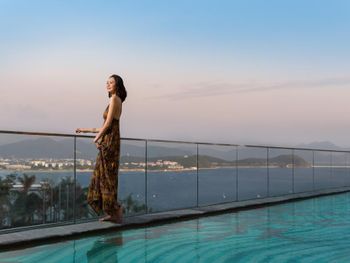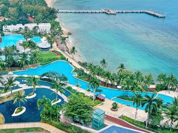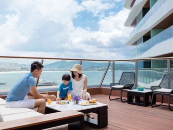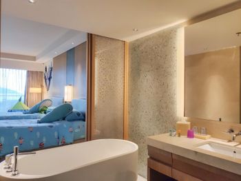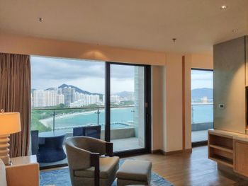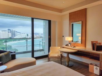 Пишут, что первая береговая линия. Но пляжа нет. До ближайшего идти больше 20 минут. Бассейн без подогрева. Были в январе. Вода очень холодная. На английском из персонала почти никто не говорит. Вообще. Даже на уровне продавщицы из Пятерочки в каком-нибудь Заволжске. Банкомат в отеле не работал. Но это выяснилось только при использовании. Банк снял с моей карты деньги, а банкомат выдал ошибку и их не выдал. Час решал вопрос с персоналом, чтобы кто-то смог позвонить на горячую линию банкомата и поговорить по-китайски. За завтраком в месте, где брать блины - в них мило ползал таракан. Я был удивлен. Сотрудник, который жарит блины, тоже. Легким движением руки он выкинул блины в помойку и начал как ни в чем не бывало жарить новые. Ну и вишенка на торте. При заселении с карты списали деньги за депозит. По выселении должны были вернуть разницу - около 1500 юаней. Вроде немного. Сказали через 10 минут деньги вернуться на карту. Деньги до сих не пришли. На сообщение в букинг отель не отвечает. Общаюсь через службу поддержки букинг. Пока безрезультатно