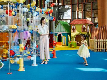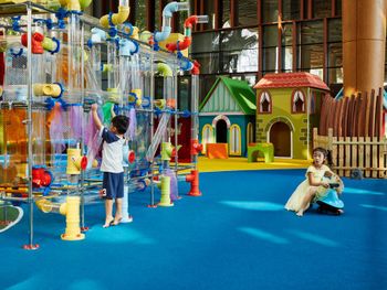 Очень красивое фойе, отличная детская игровая, разнообразный завтрак, стильное оформление отеле, приятная зона с растениями возле детской игровой