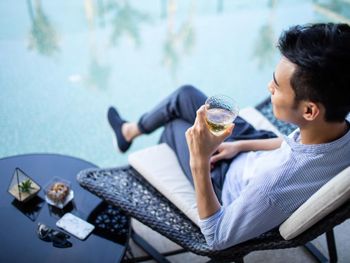 Нас в тот день посадил менеджер за стол. Мы оставили свои вещи и пошли за завтраком. Через 5 мин. возвращаюсь, а там ловкие китайцы заняли стол и орут уборщице, чтобы она сдвигала им еще столы. Только когда я стала на повышенных тонах объяснять, что это наш стол. Они прекратили сдвиг столов, но не захват столика. Нас официанты попросили пересесть рядом. Т.е. менеджер ниже стоит, чем кухонные работники))))))))) Тут не 5 звезд. Еще очень смутила одна вещь на потолке в ванной. Ну, ладно, что ванна чуть ли не в кровати. Это решаемо перегородкой. Но, датчик на потолке, нас реально озадачил. Сначала, мы подумали, что он реагирует на влажность и мигает красным когда поднимается температура или влажность, но нет. Он начинал мигать, когда живое существо двигалось по направлению в душ или туалет или перемещалось по ванне. Может это камера такая? Непонятно. В первый день у бассейна на лестнице видели змею. Нам сказали, что такое после тайфуна бывает. Хотя ящериц мы видели в саду и в хорошую погоду. Просто змея красно-коричневого цвета в нашей местности не встречается - как-то неприятно. А вот крысы в саду очень даже жирненькие, похожи на наших сусликов. В целом это хороший 3-звездный отель.