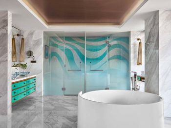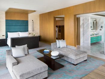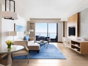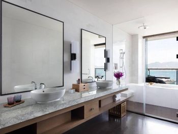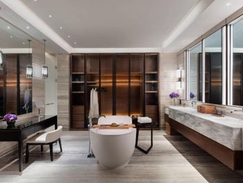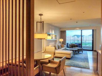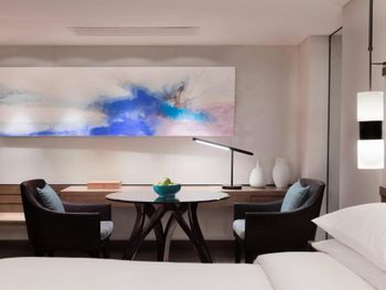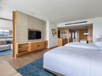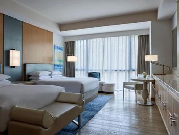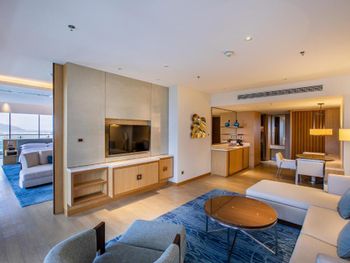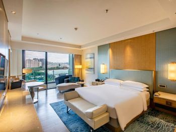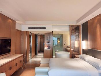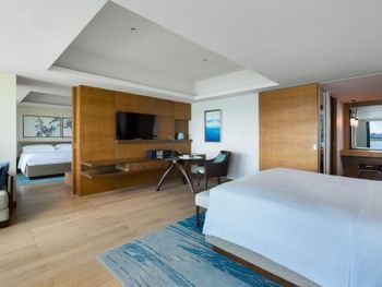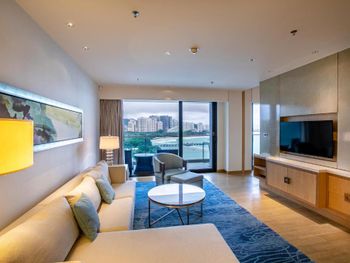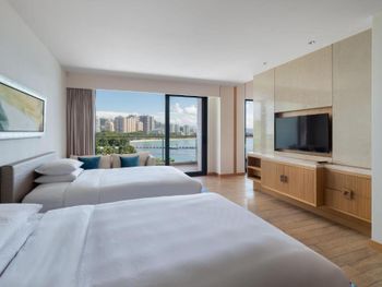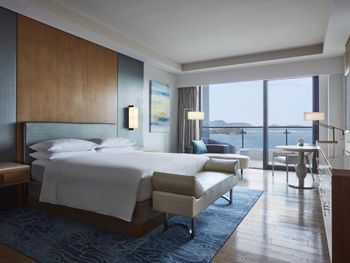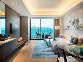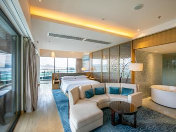 Из просторных номеров отеля JW Marriott Sanya Dadonghai Bay открывается живописный вид на сад. Из некоторых номеров открывается вид на море или горы. В гостиной зоне установлены диван, сейф, телевизор со спутниковыми каналами и мини-бар.