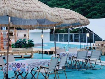 Нас в тот день посадил менеджер за стол. Мы оставили свои вещи и пошли за завтраком. Через 5 мин. возвращаюсь, а там ловкие китайцы заняли стол и орут уборщице, чтобы она сдвигала им еще столы. Только когда я стала на повышенных тонах объяснять, что это наш стол. Они прекратили сдвиг столов, но не захват столика. Нас официанты попросили пересесть рядом. Т.е. менеджер ниже стоит, чем кухонные работники))))))))) Тут не 5 звезд. Еще очень смутила одна вещь на потолке в ванной. Ну, ладно, что ванна чуть ли не в кровати. Это решаемо перегородкой. Но, датчик на потолке, нас реально озадачил. Сначала, мы подумали, что он реагирует на влажность и мигает красным когда поднимается температура или влажность, но нет. Он начинал мигать, когда живое существо двигалось по направлению в душ или туалет или перемещалось по ванне. Может это камера такая? Непонятно. В первый день у бассейна на лестнице видели змею. Нам сказали, что такое после тайфуна бывает. Хотя ящериц мы видели в саду и в хорошую погоду. Просто змея красно-коричневого цвета в нашей местности не встречается - как-то неприятно. А вот крысы в саду очень даже жирненькие, похожи на наших сусликов. В целом это хороший 3-звездный отель.
