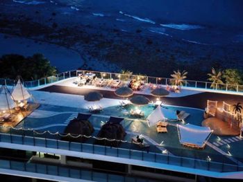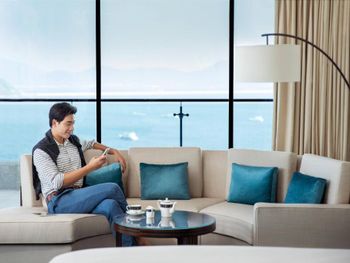 Пишут, что первая береговая линия. Но пляжа нет. До ближайшего идти больше 20 минут. Бассейн без подогрева. Были в январе. Вода очень холодная. На английском из персонала почти никто не говорит. Вообще. Даже на уровне продавщицы из Пятерочки в каком-нибудь Заволжске. Банкомат в отеле не работал. Но это выяснилось только при использовании. Банк снял с моей карты деньги, а банкомат выдал ошибку и их не выдал. Час решал вопрос с персоналом, чтобы кто-то смог позвонить на горячую линию банкомата и поговорить по-китайски. За завтраком в месте, где брать блины - в них мило ползал таракан. Я был удивлен. Сотрудник, который жарит блины, тоже. Легким движением руки он выкинул блины в помойку и начал как ни в чем не бывало жарить новые. Ну и вишенка на торте. При заселении с карты списали деньги за депозит. По выселении должны были вернуть разницу - около 1500 юаней. Вроде немного. Сказали через 10 минут деньги вернуться на карту. Деньги до сих не пришли. На сообщение в букинг отель не отвечает. Общаюсь через службу поддержки букинг. Пока безрезультатно