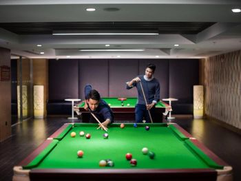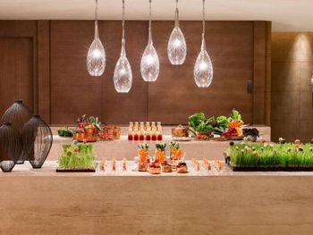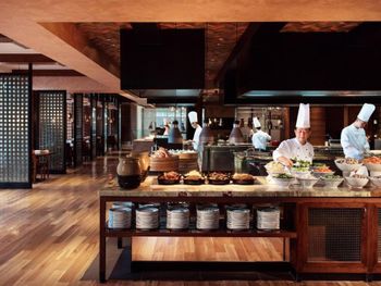 В 3 ресторанах на территории подают блюда аутентичной кухни. В ресторане JW Kitchen с открытой кухней в течение всего дня предлагают аутентичные местные блюда, а также «шведский стол» из блюд интернациональной кухни. Гости также могут попробовать местные и региональные блюда в специализированных китайских и корейских ресторанах отеля.
