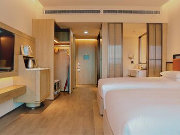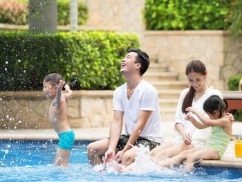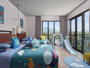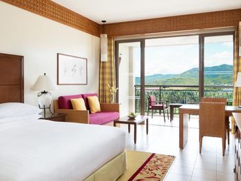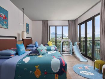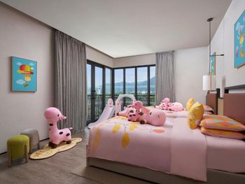 Достаточно просторный номер. Большая территория, большой бассейн, есть детская зона бассейна с подогревом, выдают плавательные круги и нарукавники. Завтраки понравились, правда, фрукты были не лучшего качества (гуава в основном незрелая). Японский ресторан при отеле очень понравился. Room service удобный, сканируешь qr-код в WeChat и заказываешь, доставляют еду очень быстро, и сама еда вкусная, выбор хороший, есть детское меню. Много всяких развлечений для детей