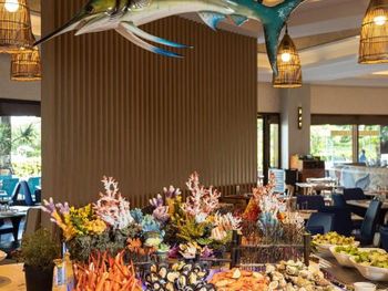 На территории работают 3 ресторана, в которых подают блюда японской, китайской и интернациональной кухни. В лаундже View, гриль-баре у бассейна Sea Breeze и баре на пляже Deep Blue гостям предлагают экзотические коктейли.Парам особенно нравится расположение — они оценили проживание в этом районе вдвоем на 9,6.Расстояние, указанное в описании, рассчитано с помощью © OpenStreetMap