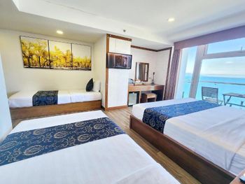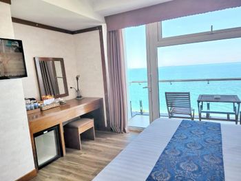 Мы жили в пятером в семейном номере с балком с видом на море. Номер состоит из 2х комнат- в одной гигантская кровать, во второй 2 кровати поменьше. Также в номере есть всё необходимое для комфортного проживания. Убираются каждый день, всегда чисто. Персонал вежливый. На любые вопросы реагируют быстро и всегда идут на встречу и стараются помочь по максимуму. Спасибо за это девушке Ха и, к сожалению, не запомнила как зовут вторую девушку на рецепшене.