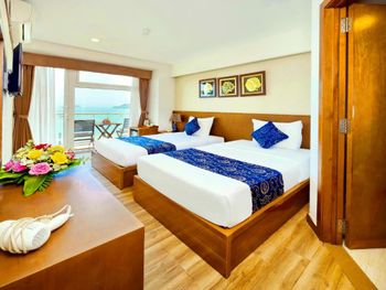 Номер нуждается в обновлении. Потертые грязноватые обои, с потолка в ванной сыпалась большими кусками штукатурка. Номер тесноват. Очень неудобные тугие подушки, но если вытащить из наволочки и спать без них, то норм. Очень простенький завтрак. Арбузы режут не моя их, прямо грязными (есть не рискнули) Хотя, я так понимаю, во Вьетнаме другие стандарты. ОЧЕНЬ плохой Wi-fi. я бы сказала почти отсутствует. Сим карту в отеле купить нельзя. Персонал на ресепшене ничего не может подсказать ( ни где купить сим карту местную, ни как куда добраться и проч. ) При выезде заставили заплатить 20 000 за две бутылки воды 0, 5 которых у нас в номере не было - когда мы въехали, у нас в номере были только бутылки 0,3 которые каждый день выдают бесплатно.