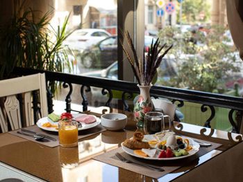 В ресторане Akhundoff подают блюда интернациональной кухни и представлен большой выбор изысканных вин. По утрам здесь накрывают завтрак «шведский стол». В нескольких минутах ходьбы работают другие рестораны.