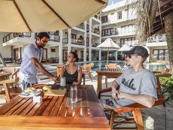 Недалеко пляж с черепахами. Океан рядом, пляж чистый, малолюдный. Недалеко есть красивый храм. Отель в принципе симпатичный. Персонал дружелюбный и старается. Милые две собачки охранницы. Удобный бассейн. Можно кушать прямо в отеле, как в ресторане (платно). Также они предлагают экскурсии.