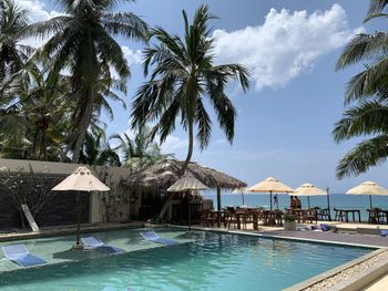 бродячие собаки пьют из бассейна, нет своего пляжа, плохой wi-fi, пытались обмануть на 30$ при заселении, двигали сейф когда нас не было в номере (ценные вещи хранить не стоит)