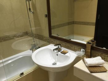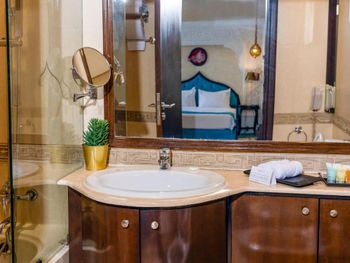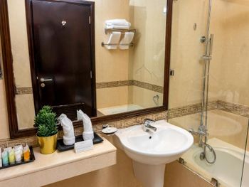 Состояние отеля оставляет желать лучшего: сломанная сантехника, старая мебель и изношенные полотенца, треснувшее зеркало! Еще и депозит за номер 200 катарских реалов, про который при бронировании не было информации. Несмотря на предупреждение о позднем заезде и выбранный способ оплаты на месте, отменили бронь и по приезде дали только один номер и предложили за доплату 200 реалов еще один, после моего возмущения тут же нашли номер той же ценовой категории.
