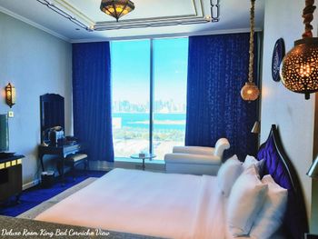 Across from the shores of Arabian Gulf sits one of Doha’s newest five-star hotels. Saraya Corniche Hotel caters to the best of both worlds, offering business travelers in-hotel business facilities along with convenient access to the city’s bustling business district. Leisure travelers can also enjoy the unparalleled luxury, plus comfort and proximity to many of Doha’s most famous landmarks, such as the corniche, Souq Waqif, and the Museum of Islamic Arts. located in heart of Doha, all major tourist attractions like Souq Waqif it is noted for selling traditional garments, spices, handicrafts, and souvenirs. It is also home to dozens of restaurants and Shisha lounges, City Center, The Islamic Art Museum is influenced by ancient Islamic architecture yet has a unique design. It was the first of its kind in the Arab States of the Arabian Gulf and has a very large collection of Islamic art, plus a study and a library. Also, Beaches like 974 beach and B12 beach which you can enjoy summer activities and enjoy a big collection from food and beverages at walkable distance. Also, we are near to the biggest shopping malls in the Middle East such Vendome palace, 20 minutes’ drive and Doha festival city, city center mall. Old Doha port which you can feel Doha soul in it. With colored buildings and stunning view of sunset in addition to huge number of restaurants, coffee shops direct on the sea and many activities like diving. Speed boats and the lovely aquamarine for your children. 5 minutes walking from one of the most luxurious restaurants in Doha oriental Perl. The famous Doha metro is about 5 minutes walking from the hotel. Hamad international airport is 10 minutes’ drive from the hotel. All of this plus our room’s stunning view which you can see all of Doha skyline and Corniche through it.